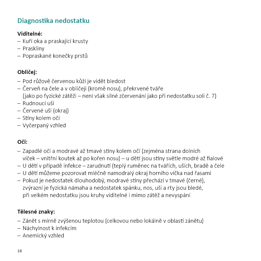 se všemi potřebnými informacemi a obrázky pro diagnostiku nedostatků tkáňových solí